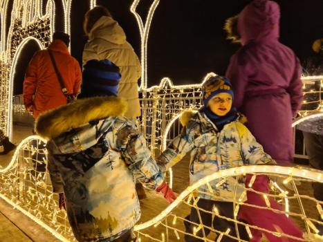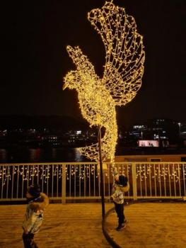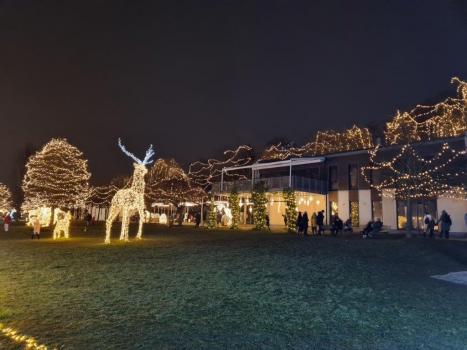 Začali jsme u svítícího klavíru. Což bylo vlastně až poslední stanoviště, ale to jsme zjistili až později a pokračovali jsme dál přes trávník do svítícího tunelu k Santovým saním. Ze všeho dýchala nádherná atmosféra Vánoc, chyběl tomu jen sníh, který přišel až tenhle týden. Areálem se nesla vůně svařáku, která tu atomosféru nádherně dokreslovala. Oproti Lumina parku, kde bylo dost bláta a neměli to dobře pořešené, tady byl všude, kde bylo bláto, natažený umělý povrch, aby to neklouzalo.