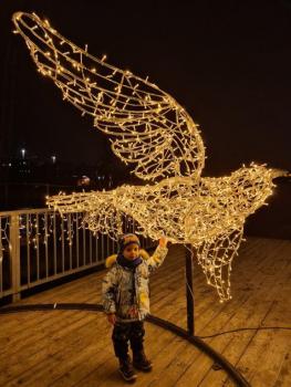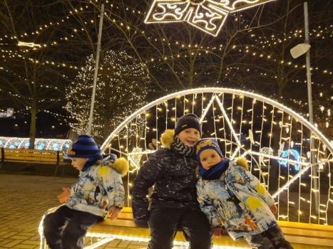 Od saní se soby jsme se vydali k obřím světelným dárkům, pak do dalšího tunelu až ke světelnému hradu. U něj děti strávily nejvíc času, protože jím pořád podbíhaly, probíhaly se v něm a tam se jim líbilo nejvíc. Zatímco u některých atrakcí jste mohli „vlézt“ do nich, jiné byly ohraničené a nesmělo se k nim. To jediné bych výstavě vytkla. Celý okruh jsme si v klidu prohlédli za cca 40 minut, ale Bertík s Hynečkem ho chtěli jít pak znovu, takže jsme si pár atrakcí šli prohlédnout ještě jednou.